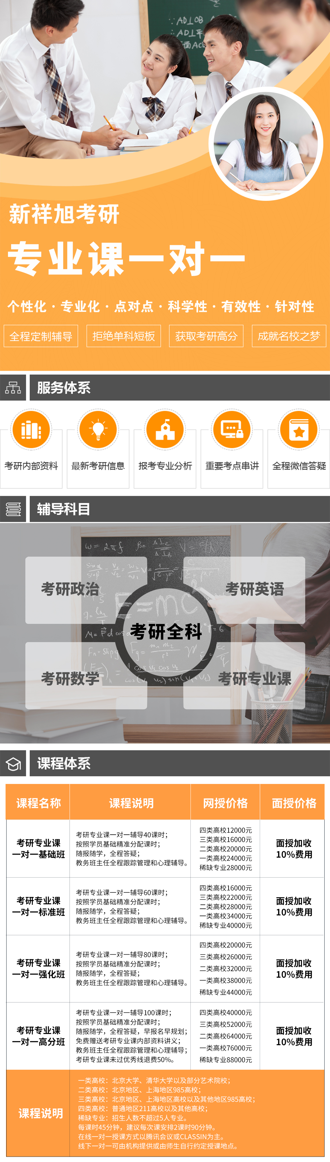 课程描述:新祥旭考研专业课一对一辅导。面授网授任意选择,全国所有高校所有专业十万师资随时待命,随报随学。听说读写全方位个性化辅导,私密一对一,讲练结合,全程答疑。