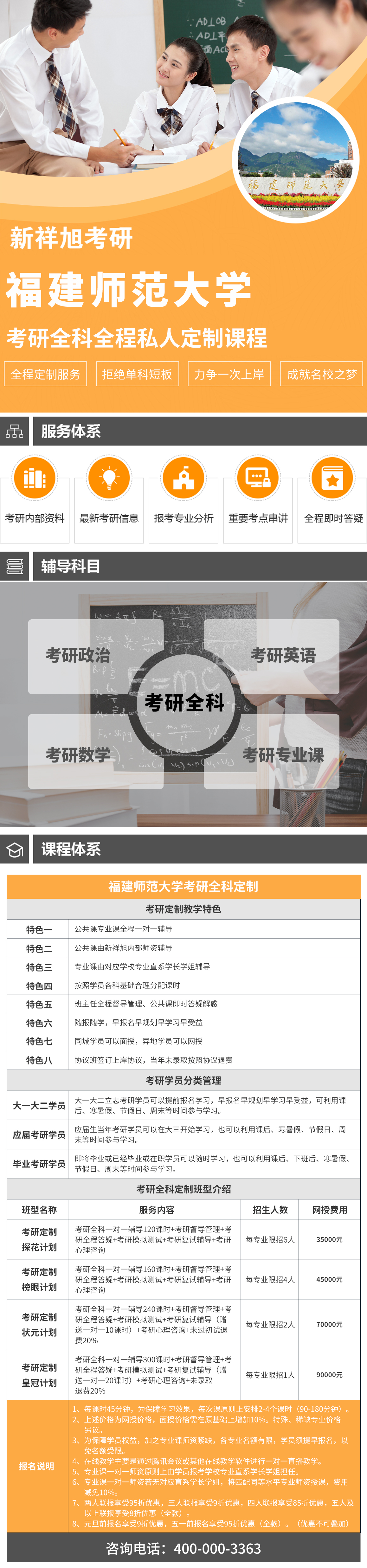 课程描述:新祥旭考研专注福建师范大学考研全科定制辅导,以效果为导向,以上岸为目标,为广大考研学生提供个性化、定制化、多对一的考研全科全程辅导,考研公共课和考研专业课皆为一对一辅导,全国各地考研学生可以面授也可以网授,力争让考研学生顺利考取福建师范大学攻读硕士研究生。