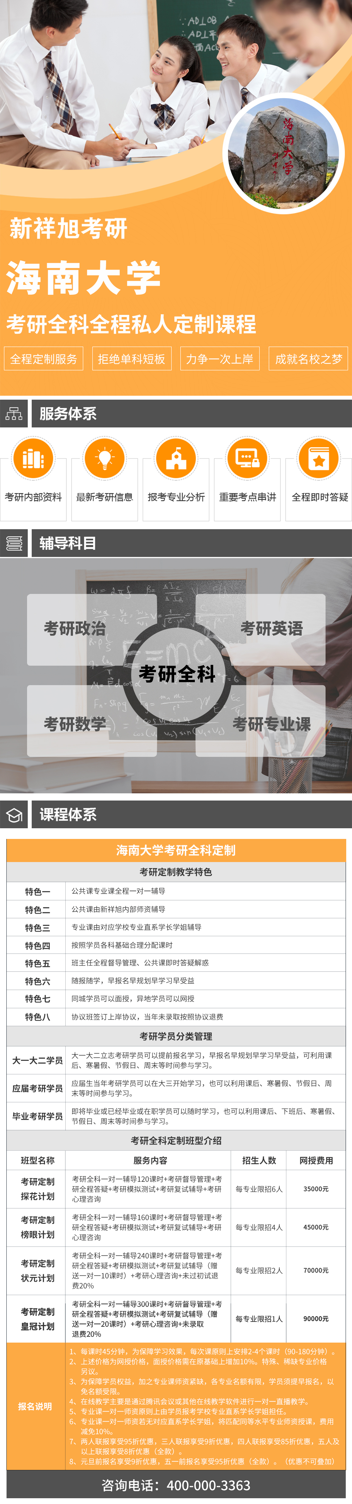 课程描述:新祥旭考研专注海南大学考研全科定制辅导,以效果为导向,以上岸为目标,为广大考研学生提供个性化、定制化、多对一的考研全科全程辅导,考研公共课和考研专业课皆为一对一辅导,全国各地考研学生可以面授也可以网授,力争让考研学生顺利考取海南大学攻读硕士研究生。