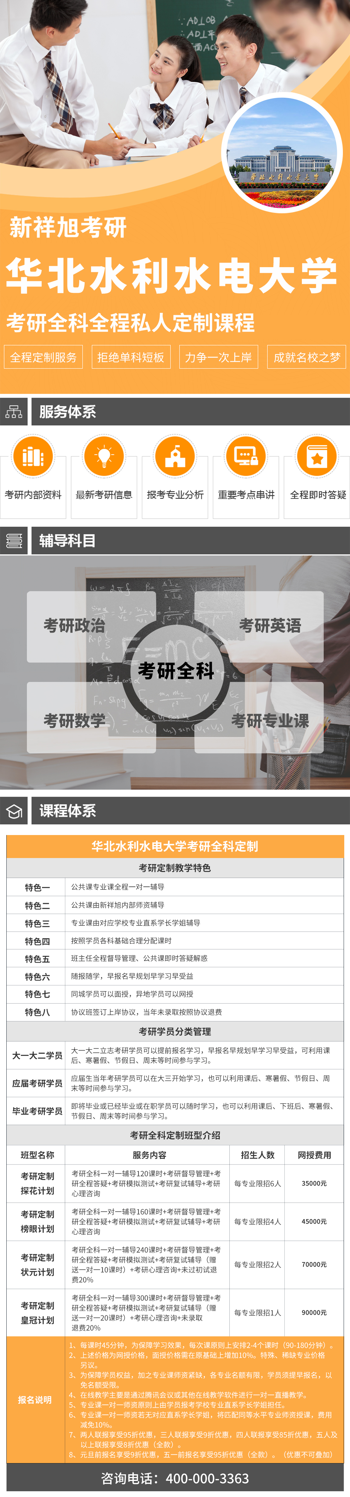 课程描述:新祥旭考研专注华北水利水电大学考研全科定制辅导,以效果为导向,以上岸为目标,为广大考研学生提供个性化、定制化、多对一的考研全科全程辅导,考研公共课和考研专业课皆为一对一辅导,全国各地考研学生可以面授也可以网授,力争让考研学生顺利考取华北水利水电大学攻读硕士研究生。