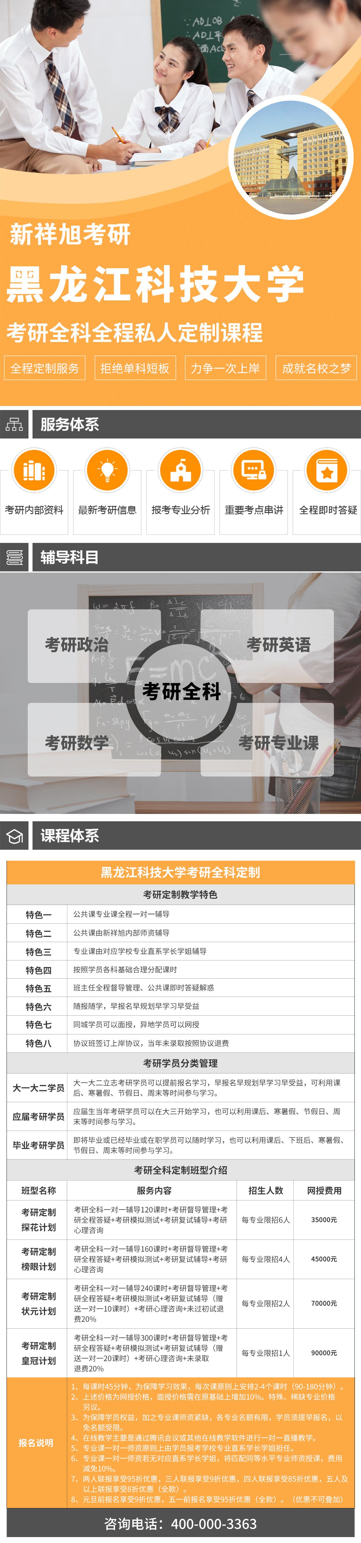 课程描述:新祥旭考研专注黑龙江科技大学考研全科定制辅导,以效果为导向,以上岸为目标,为广大考研学生提供个性化、定制化、多对一的考研全科全程辅导,考研公共课和考研专业课皆为一对一辅导,全国各地考研学生可以面授也可以网授,力争让考研学生顺利考取黑龙江科技大学攻读硕士研究生。